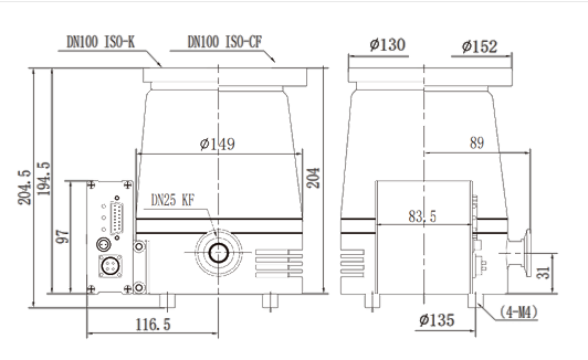KYKY FF-100/300 представляет собой высоковакуумный насос с ротором на механической подвеске, конструкция которого ориентирована на обеспечение длительной и надежной работы в условиях непрерывной откачки. Керамические шарикоподшипники с консистентной смазкой определяют эксплуатационные преимущества конструкции. Такое решение не только исключает необходимость регулярного технического обслуживания подшипникового узла на протяжении всего срока службы, но и позволяет производить монтаж насоса в любом пространственном положении, что существенно расширяет возможности его интеграции в различные вакуумные системы. Для достижения минимального уровня вибраций и высокой механической стабильности ротор насоса выполнен из цельной заготовки и проходит динамическую балансировку на двухплоскостном стенде.