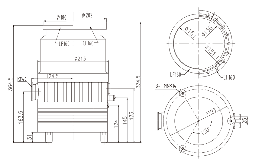 KYKY FF-160/700F (модель с водяным охлаждением) - насос с конструкцией на керамических подшипниках с консистентной смазкой. Эта схема обеспечивает высокую надежность и позволяет проводить монтаж агрегата в любом пространственном положении. Конструкция включает несколько ступеней, в том числе молекулярную, что обеспечивает стабильную работу при давлении на выхлопном фланце до 300 Па.